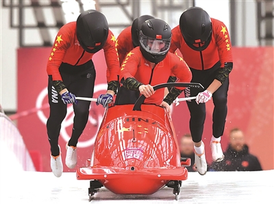 上海雪车运动员邵奕俊代表中国参加平昌冬奥会雪车比赛。
