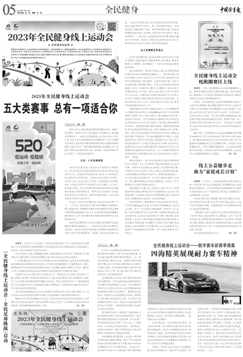 2023年全民健身线上运动会是践行全民健身和全民健康的重要实施路径之一。国务院印发的《全民健身计划(2021—2025年)》要求“推动线上和智能体育赛事活动开展,支持开展智能健身、云赛事、虚拟运动等新兴运动。”2023年全民健身线上运动会通过发挥互联网优势,联动大量互联网平台参与,进一步加强科学指导,多渠道推进工间健身推广普及、体育科普视频与线上国家体育锻炼标准和线上达标赛,实现“群众组织群众”“群众指导群众”。并且,线上运动能促进体育消费、推动大健康产业的发展,通过引入智能化设备和信息化系统,打造科技运动生态是未来线上体育发展的趋势。