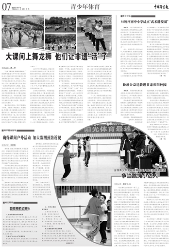 如今,舞龙舞狮已经成为尧天坪中、小学大课间体育运动的一大特色。舞龙舞狮只是尧天坪中学开展非遗进校园的一个代表,也是很多乡村学校因地制宜开展体育活动的一个缩影。现在乡村学校开展各式各样的体育活动已成为一种常态,学生的校园生活变得更加丰富多彩,也为更多学生搭建了展示的舞台。