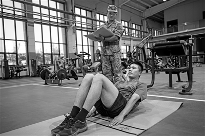 新《大纲》删除了仰卧起坐,新增加了仰卧卷腹。刚按照新《大纲》训练时,体型偏胖的吴凡心还按照仰卧起坐训练的老习惯,在仰卧卷腹中一味追求数量,常常动作变形,被判定为不合格。班长付佳琪看出了他的问题,主动靠上前交流,一对一辅导,并按照新《大纲》要求,给他进行详细释义。