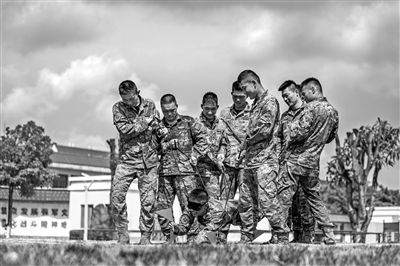 近日,为助力官兵健康成长,融洽军营氛围,武警广西总队北海支队组织官兵开展多种心理行为训练和心理解压游戏,锻造官兵过硬心理素质,增强团结协作意识,促进部队战斗力提升。图为该支队官兵进行“荆棘排雷”心理行为训练。