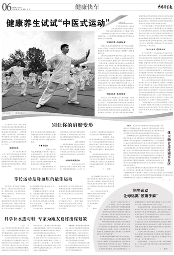 另外,朱立国提示,热身首先是要导引柔筋,顺时针或逆时针对肩、肘、膝、踝、髋关节进行锻炼拉伸,在活动脊柱方面,前屈后伸,左右侧屈,能刺激膀胱经、肝经,促进气血运行,改善关节韧带的循环。还可以按压一些穴位,比如阳陵泉、委中穴可以刺激经脉的血液循环,舒筋活络,提升关节活动的稳定性。“比较简单的方法是对四肢进行拍打,还有八段锦的‘双手托天’‘摇头摆尾’,都是活动关节、减少肌肉张力的好办法。”朱立国说。