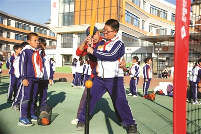 软式棒垒球具有安全易上手的特点,简化的规则降低了参与门槛,让孩子们能快速体验到挥棒、投球、跑垒的乐趣,非常适合在学校推广。盘锦市棒垒球协会负责人表示:“霞光府小学从办学起就重视体育,该校引进棒垒球,就是最好的体现。在本次活动中,学生们的表现远超预期。参与的班级中仅有少数人接触过棒垒球,打击本是最难环节,但三分之二以上的孩子一上手就能打到球,动作也比较规范。”
