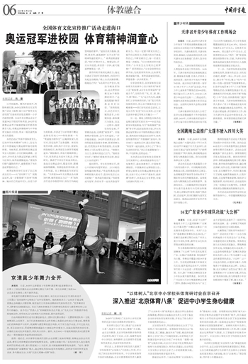 另一边,操场上的特色文体活动也吸引着冠军们的目光——10名书法班学生现场挥毫,写下“体育强国”“拼搏”等字样;掐丝珐琅展台前,学生向奥运冠军展示亲手制作的奥运主题文创。最热闹的当属运动互动环节,杨秀丽和郭伟阳在“不倒森林”游戏中,和学生们一起握住长杆,配合保持平衡。“和冠军一起玩游戏,太开心了!”参与互动的同学说,“我以后也要像他们一样,不怕困难,坚持运动。”