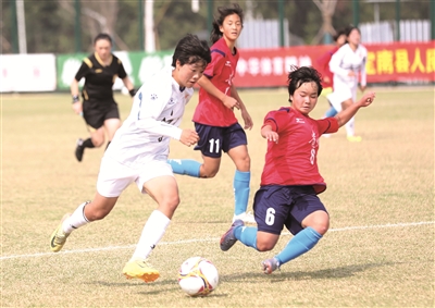 江西队在十五运会女子足球U16组资格赛E组收官战中。