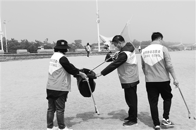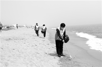 活动中,大家手持夹子、垃圾袋沿着沙滩捡拾着塑料瓶、卫生纸、竹签、烟头等垃圾,并对绿化带内、垃圾桶周围的垃圾进行重点清理。同时,向周围的游客进行环境保护宣传,呼吁大家杜绝随手乱扔垃圾等不文明行为,共同保护好我们的家园。