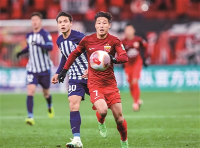 上海海港队球员武磊(右)在比赛中。 新华社发(海沙尔摄)