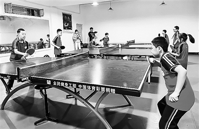 在库尔勒市第一小学,和依帕热一样热爱乒乓球运动的孩子有很多。即使没有加入校队或社团,这里的学生也有足够机会参与到乒乓球活动中。除了分布于操场两侧的数十张球台,可以满足学生在课余时间“随手打两拍”的需求,学校还将乒乓球纳入了体育课的教学内容,保证每位学生都能在上课时接触到这项运动,提高了“国球”在校园的普及率。