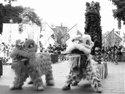 本报讯 “百狮决胜帽峰之巅”2024年广州市白云区第十届传统南狮锦标赛近日在帽峰山景区古庙广场举行。62支精英醒狮队伍齐聚一堂,超1000名技艺高超的运动员同场竞技,现场观众超2000人。多支队伍在擂台上展开激烈的角逐,互相追逐、嬉戏,用夸张的动作和表情争夺“狮王”的宝座。