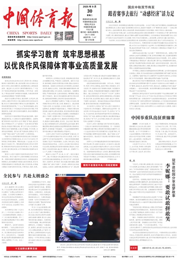 《中国体育报》(电子版)的一切内容(包括但不限于文字、图片、PDF、图表、标志、标识、商标、版面设计、专栏目录与名称、内容分类标准以及为读者提供的任何信息)仅供中国体育报社读者阅读、学习研究使用,未经中国体育报社及相关权利人书面授权,任何单位及个人不得将《中国体育报》(电子版)所登载、发布的内容用于商业性目的,包括但不限于转载、复制、发行、制作光盘、数据库、触摸展示等行为方式,或将之在非本站所属的服务器上作镜像。否则,中国体育报社将采取包括但不限于网上公示、向有关部门举报、诉讼等一切合法手段,追究侵权者的法律责任。 |
