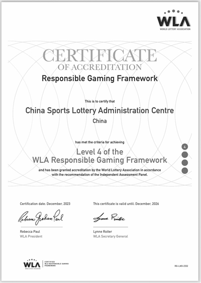 世界彩票协会是一个国际会员制组织,拥有150多个彩票机构会员,范围覆盖六大洲、80多个国家,为众多的彩票服务商提供分享交流的平台,其指定的责任彩票框架——四个级别认证,为彩票机构提供了不断改进责任彩票措施的方向,让彩票机构可以对标更高的实施标准,是国际上一致遵循的责任彩票建设标准。中国体育彩票以世界彩票协会的框架和先进地区的实践为标杆,基于国际标准,结合中国的国情和彩票特性,建立了中国体育彩票责任彩票管理体系。在向世界彩票协会申请四级认证的过程中,中国体育彩票从责任彩票管理、体彩队伍建设、游戏设计、购彩者教育等方面做了很多具体工作。