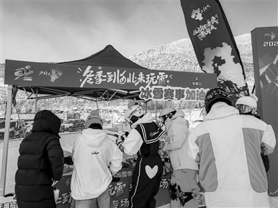 在雪如意滑雪场,“冬季到河北来玩雪”冰雪赛事加油站受到广大雪友欢迎,现场设置了互动游戏区、合影打卡区以及冰雪休闲线路展示区。不少雪友通过雪地飞盘九宫格、雪板平衡挑战等趣味项目,赢取滑雪飘带、口罩、手拉旗等文创礼品,合影打卡装置和冰雪休闲线路展板前也吸引了众多雪友拍照。