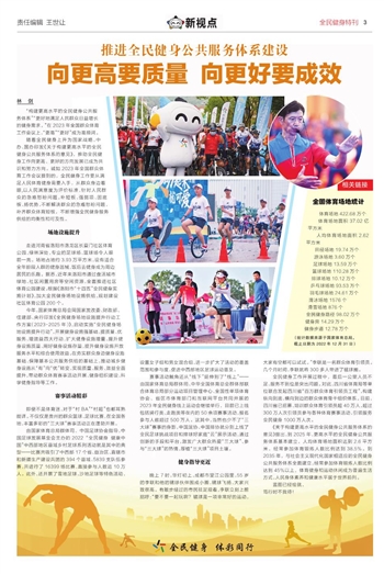 今年,国家体育总局会同国家发改委、财政部、住建部、央行印发《全民健身场地设施提升行动工作方案(2023-2025年)》,启动实施“全民健身场地设施提升行动”,开展健身设施强基础、提质量、优服务、增效益四大行动,扩大健身设施增量、提升健身设施质量、用好健身设施存量,提升健身设施开放服务水平和综合使用效益。在夯实群众身边健身设施基础、保障基本公共服务供给的基础上,推动城乡健身设施从“有”向“优”转变,实现质量、服务、效益全面提升,带动群众体育赛事活动开展、健身组织建设、科学健身指导等工作。