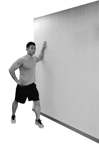 以右侧为例,右侧前臂抵住一侧门框或扶手,躯干及下肢成弓字步体位,呼气时下肢保持不动,躯干自然往前下方做位移,当感受到明显的牵拉感时动作维持30至60秒,左右两侧各重复3至5次。随着手臂摆放位置不同,会牵拉到不同肌肉,如果大臂与身体呈90度,则主要牵拉胸大肌,如果大臂与身体呈150度左右,则主要牵拉胸小肌。