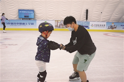 “非常不错的滑冰场,很适合带着孩子去体验。”“在南方也可以随时滑冰了,特别喜欢这里。”在福建省厦门市的筼筜湖畔,有一处被昵称为“白馒头”的体育场馆——厦门市体育中心冰上空间,这是福建省首座可移动气膜真冰场。自2022年5月开业以来,冰上空间备受追捧,成为厦门热门“打卡地”。冰上空间还定期推出免费公益冰雪培训,以此带动更多的人参与冰雪运动。