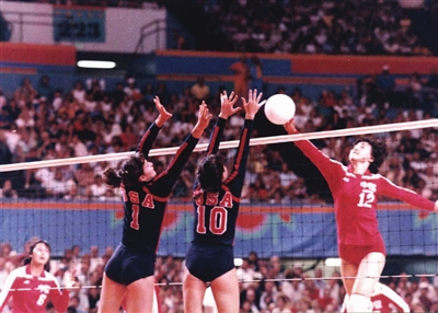 1984年洛杉矶奥运会,中国女排在决赛中遭遇东道主美国队。中国女排打出气势,完胜对手,首次赢得奥运会金牌,实现世界三大赛的“三连冠”。